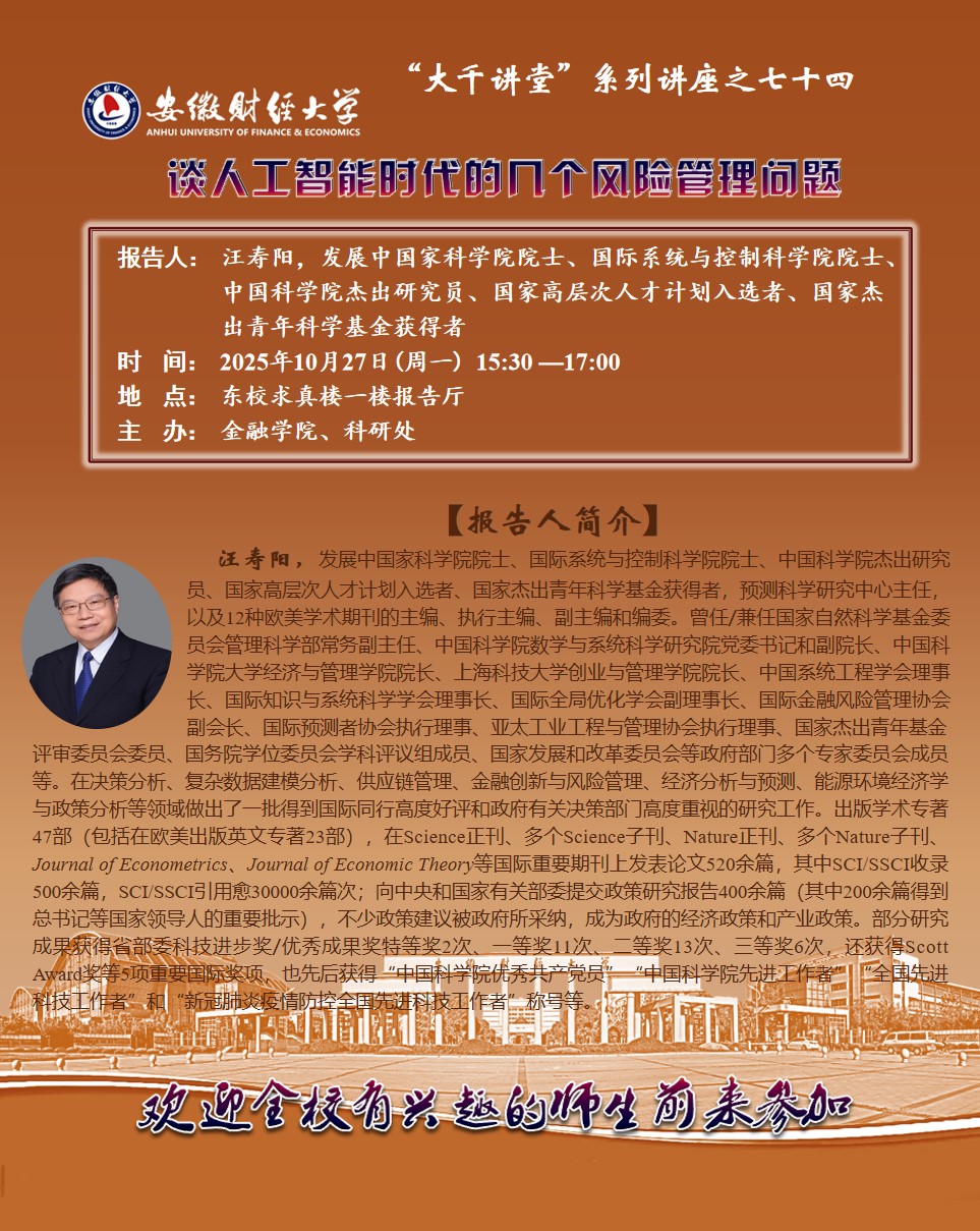 2025年10月27日:【“大千讲堂”系列讲座之七十四】谈人工智能时代的几个风险管理问题