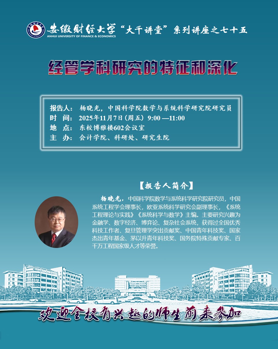 2025年11月7日:【“大千讲堂”系列讲座之七十五】经管学科研究的特征和深化